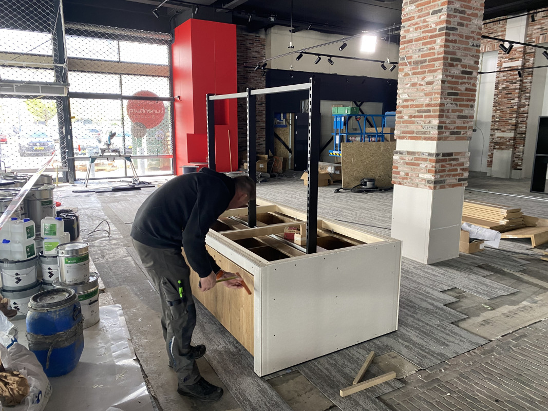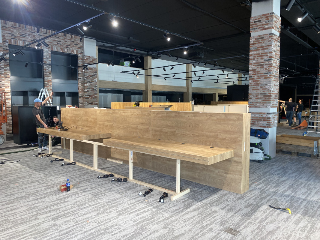 Deze foto's laten zien welke stappen er zijn gezet tot gisteren. Op dit moment zijn de interieurbouwers druk bezig en zijn er elke dag veranderingen zichtbaar.